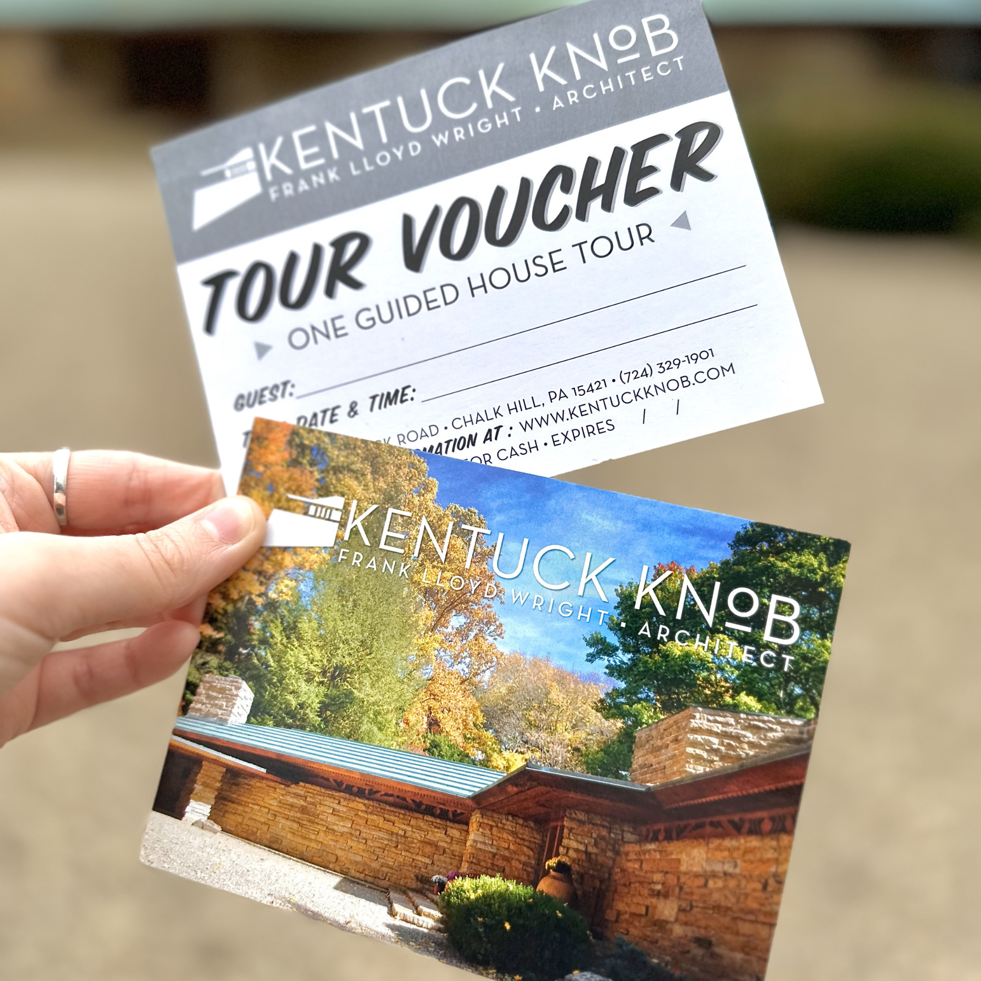 The perfect gift for architects, designers, history buffs and fans of Frank Lloyd Wright. Each Tour Voucher is redeemable for one (1) Guided House Tour of Kentuck Knob, redeemable within one year of purchase. Each purchase is accompanied by instructions on how to redeem your vouchers.